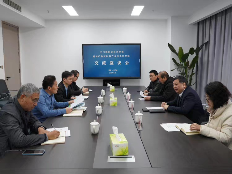 1月10日,为更好的服务地方新材料产业发展,颉潭成院长到超纯矿物质新材料产业技术研究院进行调研,学院院长助理李启松、科研处处长陈玮、食品园林学院院长辛峰陪同调研。超纯矿物产业技术研究院副院长王剑锋、河南省超纯矿物新材料产业研究院有限公司 董事长张晓昂、河南地质研究院三门峡基地常务副主任王久 、河南省超纯矿物新材料产业研究院有限公司综合部主任赵大鹏参加调研座谈。